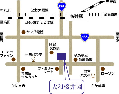 JR・近鉄桜井駅バス停⇒「生田」バス停下車⇒徒歩5分