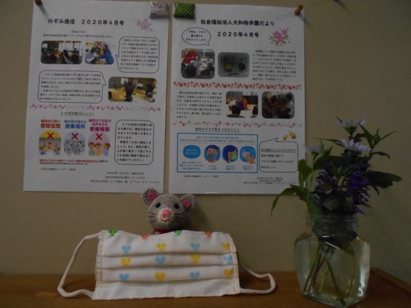 マスクを手作りしました、とのことでそれぞれ素敵なマスクを戴きました。ご近所の方から庭に咲いていたので、と可憐なお花も頂戴しました。皆様のお気持ちが嬉しいです。可憐なお花に癒され、素敵なマスクをつけ、皆で前向きに乗りきっていこうと思います。ありがとうございます。
