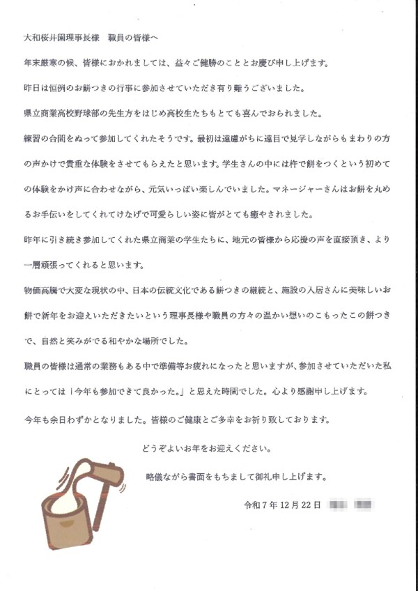 スタッフ一同の励みになります。お手紙ありがとうございます。