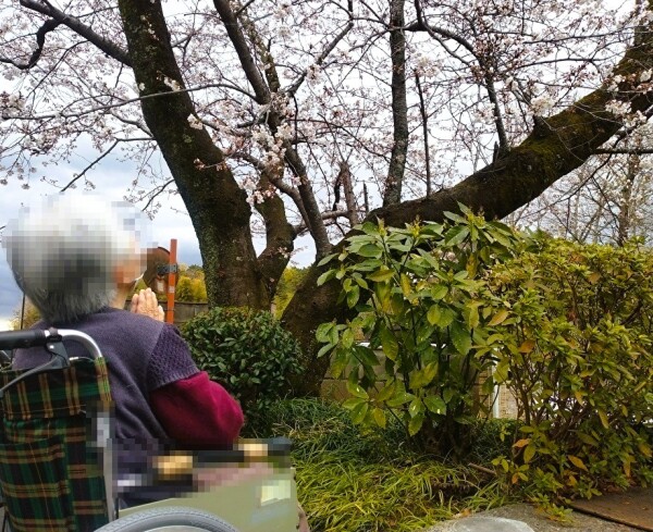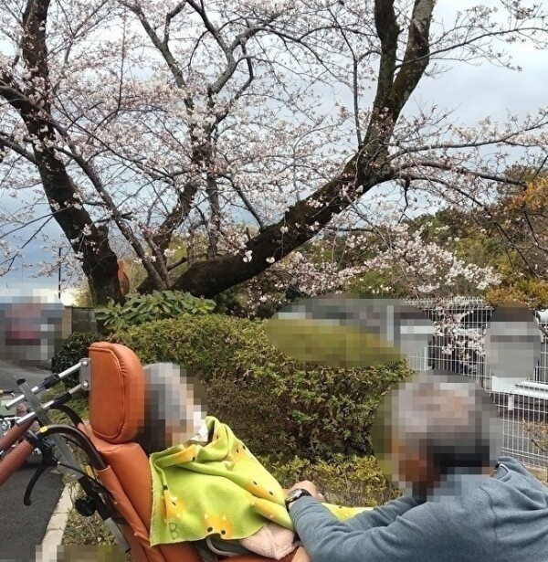 ご利用くださっている方、ご家族様、咲き初めの桜のもとでゆったりとした時間を過ごされてみえます。